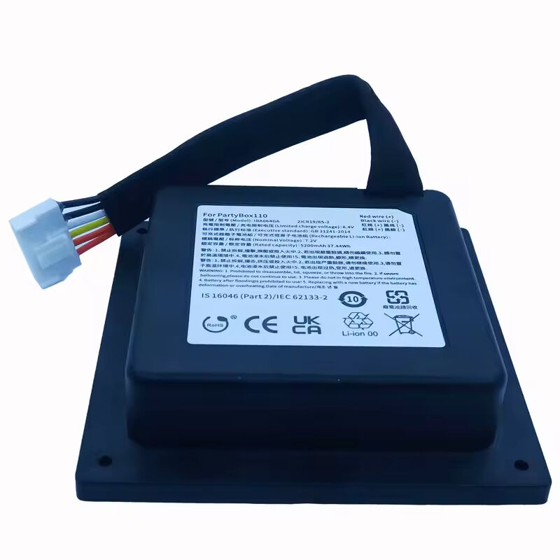 The JBL PartyBox 100 is a portable speaker rated for up to 12 hours of playtime on a built-in 14.4V 2500mAh Li-ion battery; replacement batteries are commonly offered by third parties due to limited official options. When selecting a pack, ensure the connector type, polarity, and dimensions match your unit, and verify the battery management system (BMS) includes overcharge, overdischarge, and short-circuit protection.